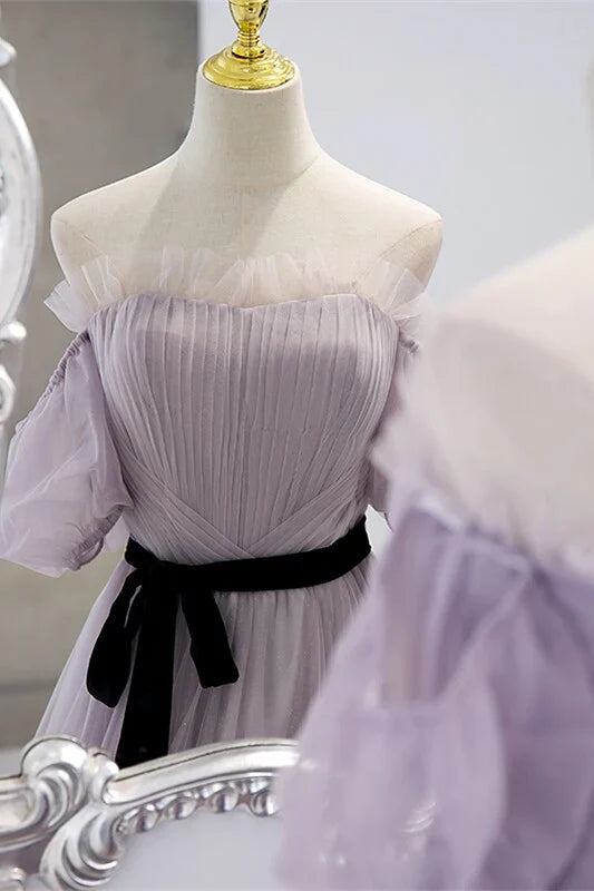 Wholesale A Line Soft Tulle Off the Shoulder Long Prom Dress Charming Evening Dress