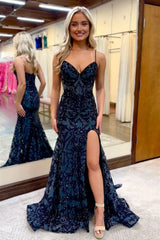 Wholesale Prom Dress Gorgeous Sparkly Mermaid Spaghetti Straps With Slit
