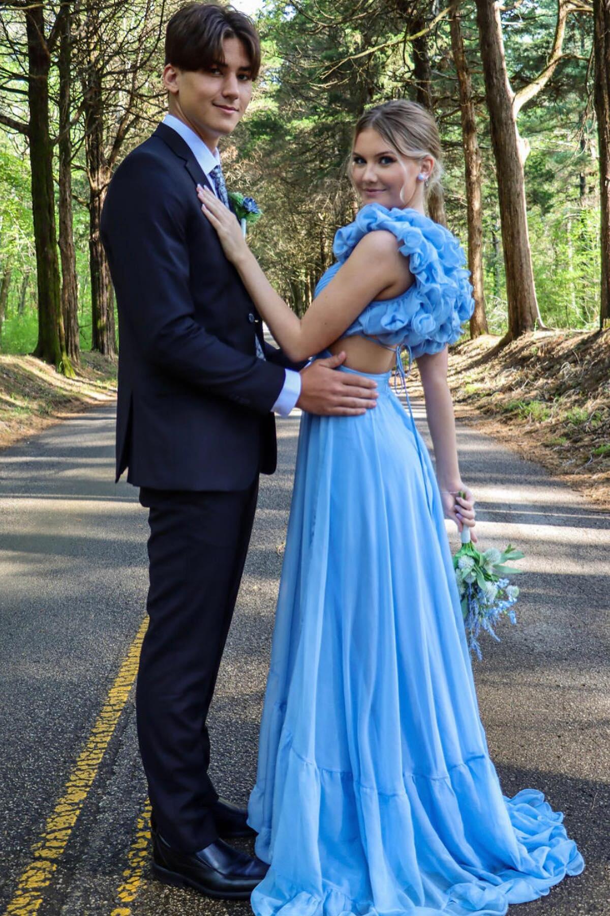 Ruffles Fuchsia Chiffon A-line Boho Dress Prom Dress Charming Evening Party Dress