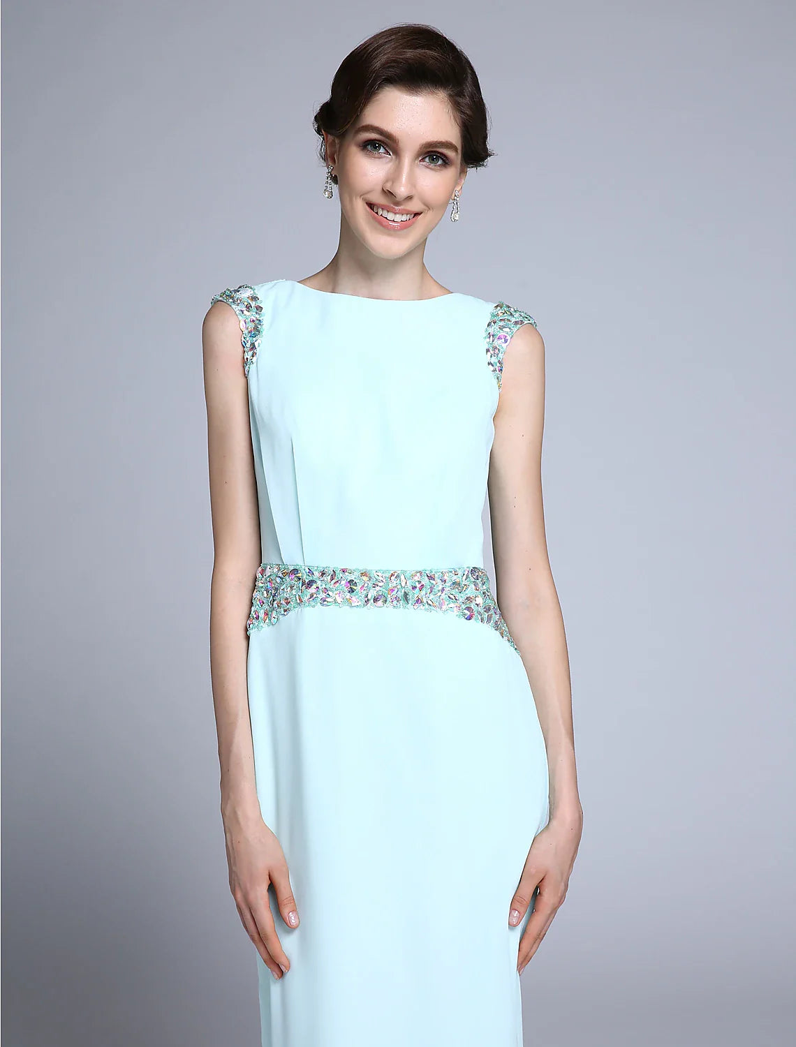 Sheath / Column Mother of the Bride Dress Elegant Bateau Neck Ankle Length Chiffon Sleeveless No with Crystals