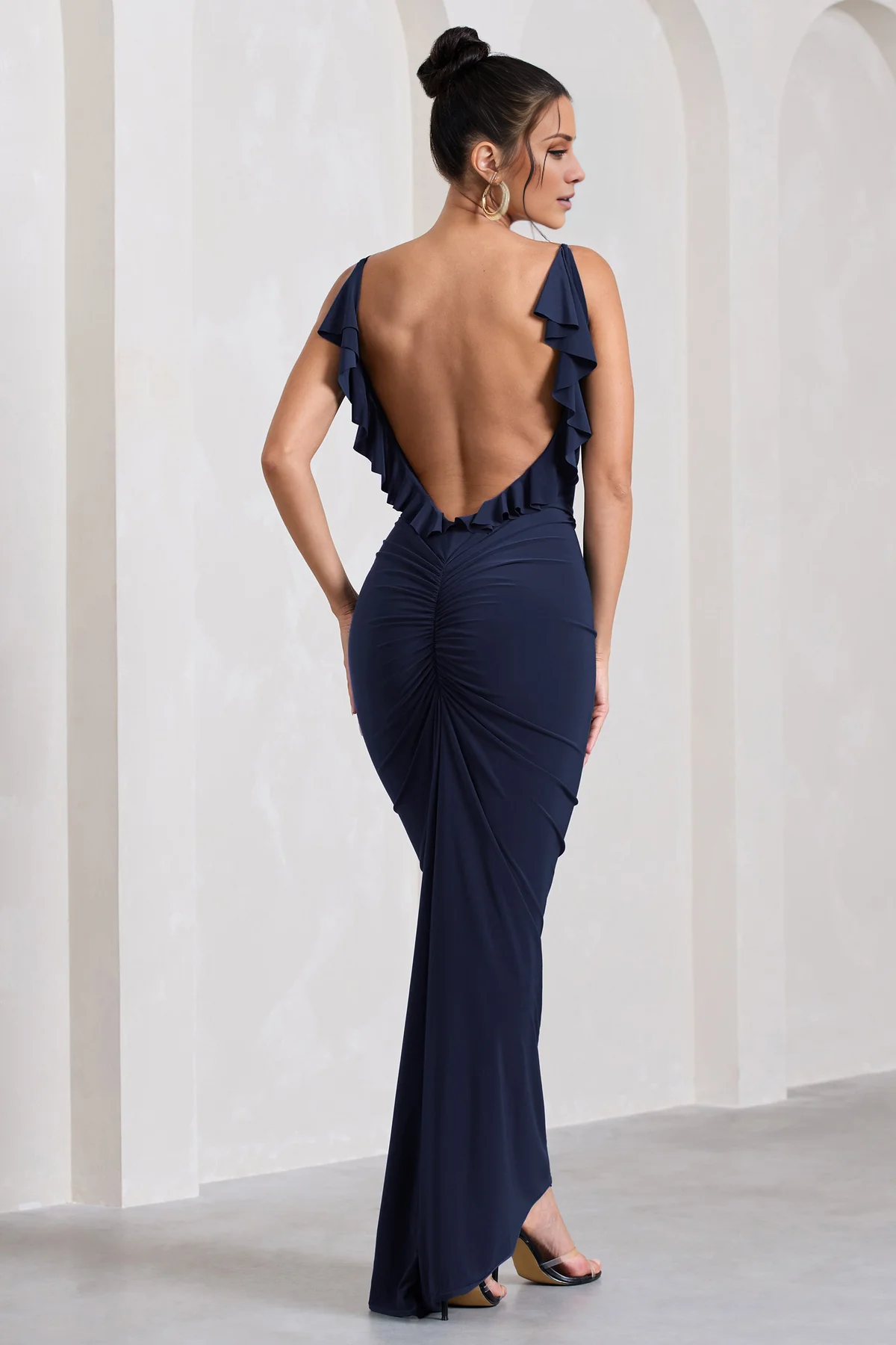 Wrinkled backless backless slim fit and floor length evening dress - Jimiss Dress