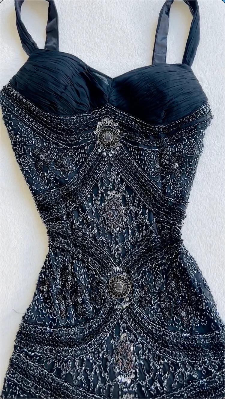 Women's Elegant Sequin Maxi Evening Dress - Black