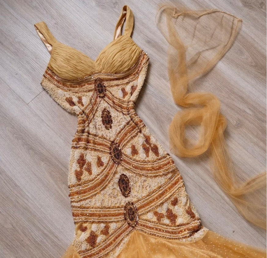 Vintage Yellow Mermaid Tulle Chiffon Long Prom Dress Pretty Birthday Dress ED01679