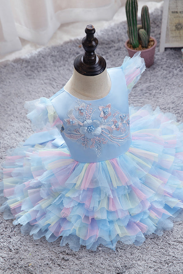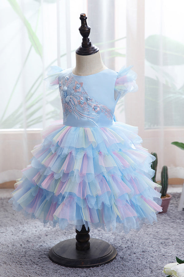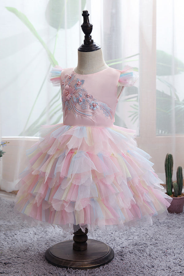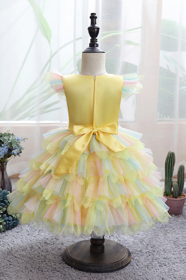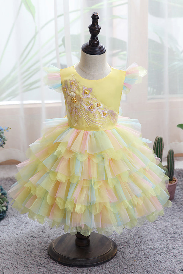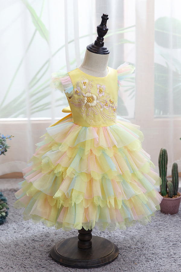 Yellow Tulle Ruffles Flower Girl Dress for Weddings with Appliques